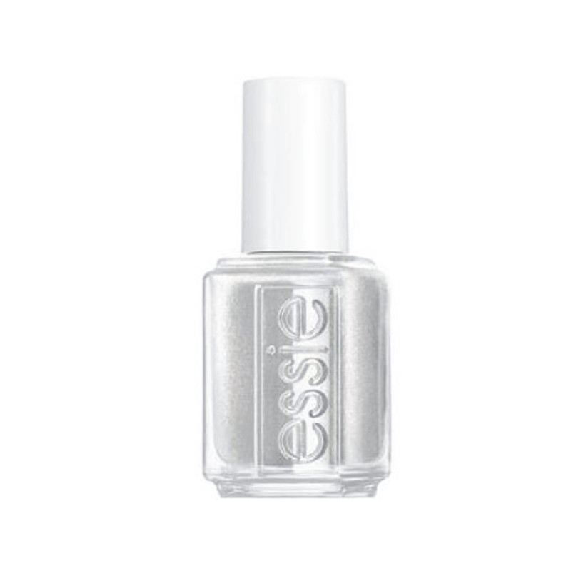 Essie 805 All You Ever Beaded, shimmer ψυχρό ασημί βερνίκι νυχιών με λευκούς υποτόνους.