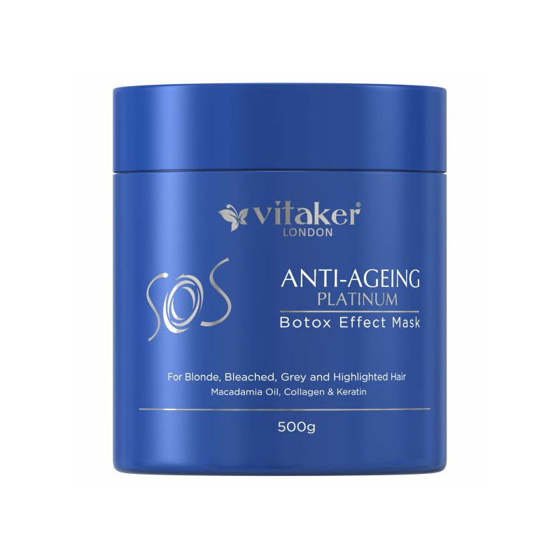 Vitaker SOS Anti Ageing Platinum Hair Mask. Εξειδικευμένη θεραπεία κερατίνης για απόλυτη πειθαρχεία, για ξανθά, γκρίζα η με ανταύγειες μαλλιά.