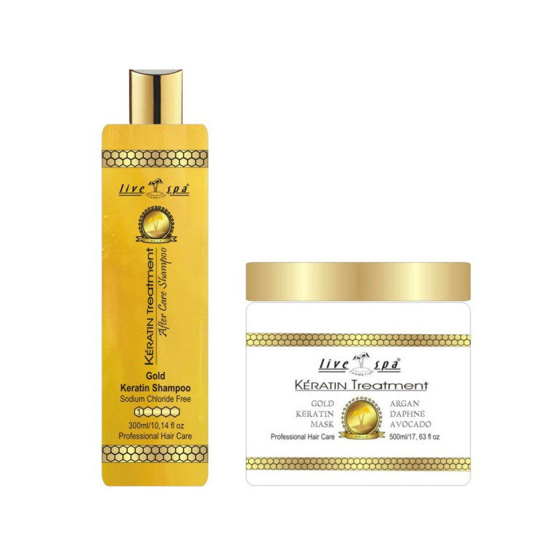 Live Spa Gold Keratin Shampoo 300ml+Live Spa Gold Keratin Mask 500ml