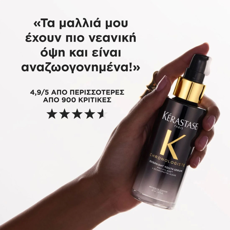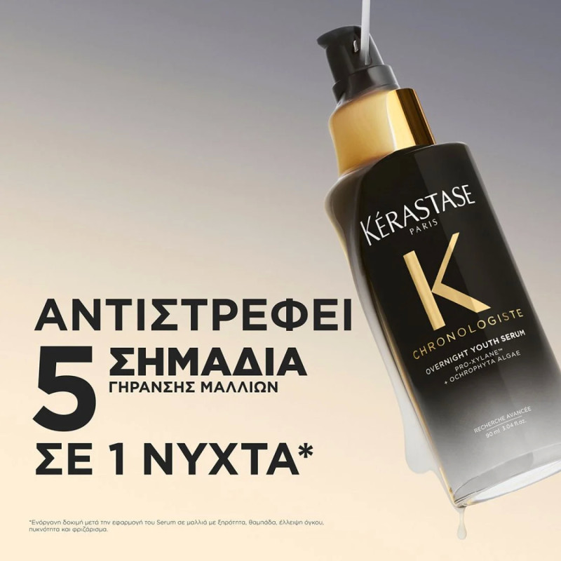 Ο ορός νεότητας Overnight Youth Serum της Kérastase είναι μια διορθωτική νυχτερινή θεραπεία αναζωογόνησης, εμπλουτισμένη με Pro-Xylane™ και Ochrophyta Algae, σχεδιασμένη να αντιστρέφει τα ορατά σημάδια της ηλικίας κατά τη διάρκεια της νύχτας.