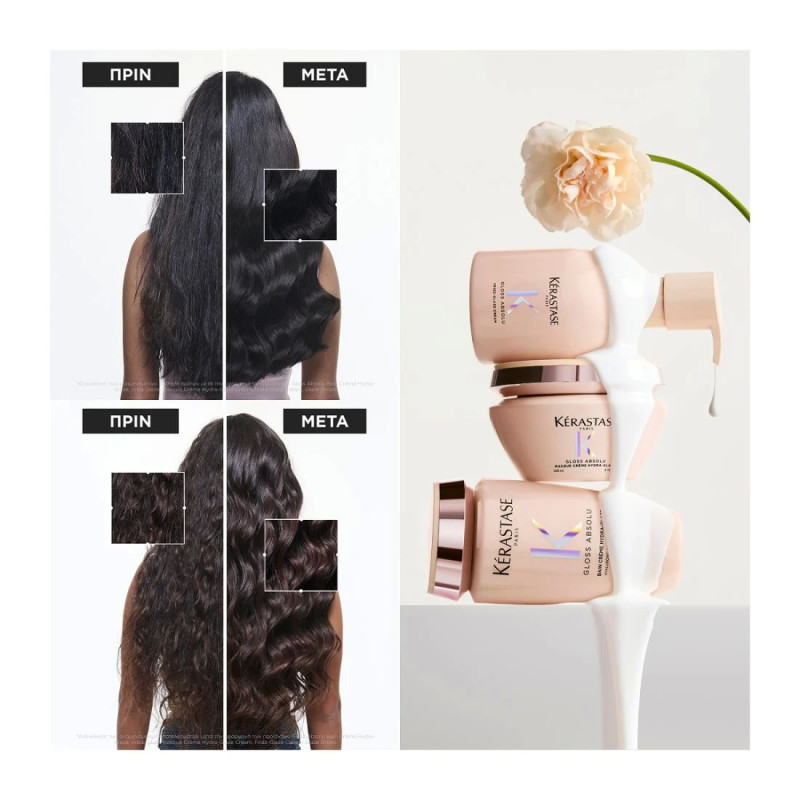 *Δοκιμή με όργανα μετά την εφαρμογή Bain crème + masque + Frizz Glaze cream.